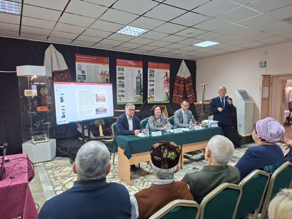 О грантовом проекте Главы Республики Башкортостан рассказал председатель курултая башкир Пермского края Расиль Мухаматьянов. Депутат Госсобрания РБ, заведующий центром социально-культурного анализа Института стратегических исследований Юлдаш Юсупов рассказал о происхождении башкирского народа в трудах С.И. Руденко. Также Юлдаш Мухамматович подарил»Атлас народов Башкортостана» и передал копии архивных документов С. Руденко, которые хранятся в ИЯиЛ РАН РБ.