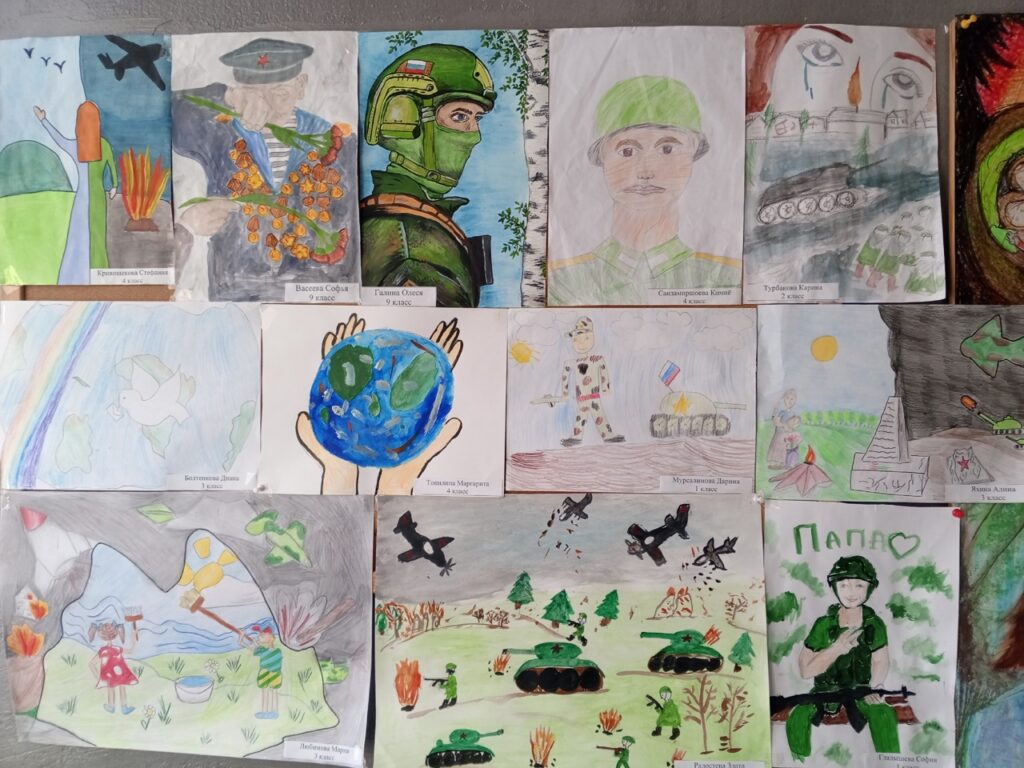 Детский конкурс проведен на военную тему, по различным номинациям: конкурс рисунков, конкурс стихов, конкурс сочинений и рефератов, вокальное творчество о подвигах их родственников в Великую Отечественную войну.